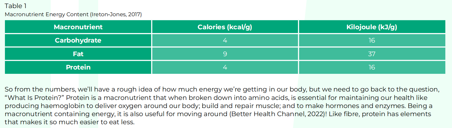 Table 1 below shows how much energy is in each macronutrient.